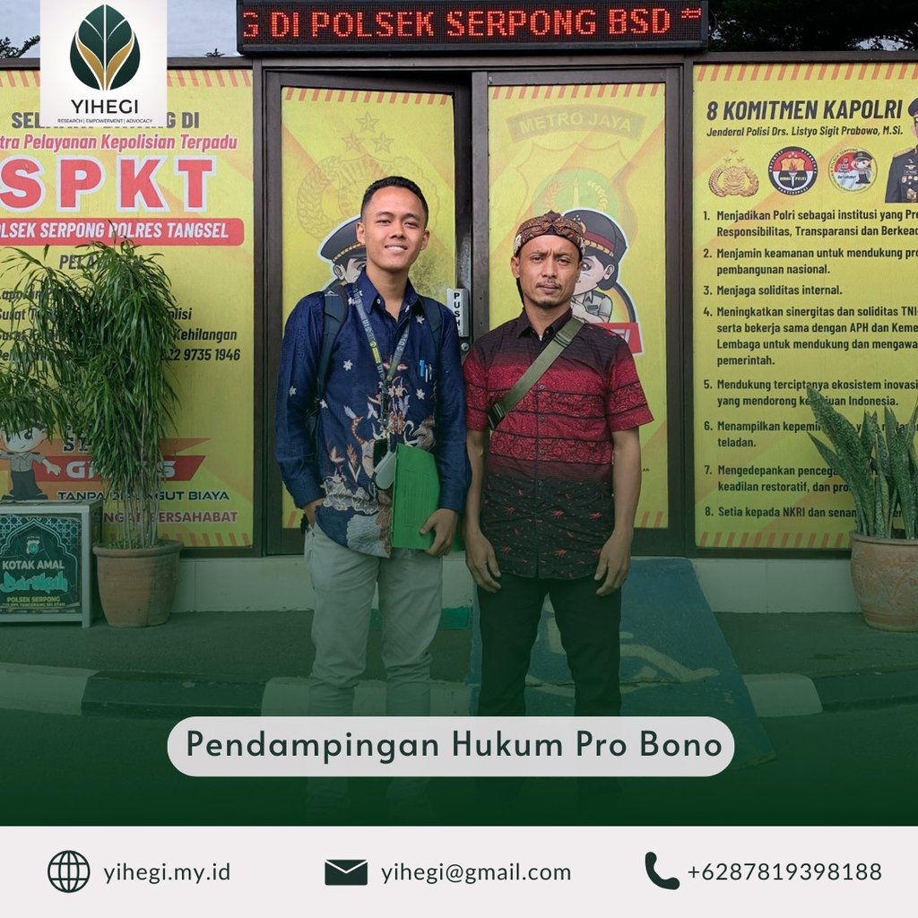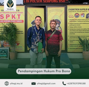YIHEGI hadir dan melayani demi keadilan bagi orang tidak mampu yang berani menggunakan hak bantuan hukum secara pro bono dalam menghadapi proses hukum.